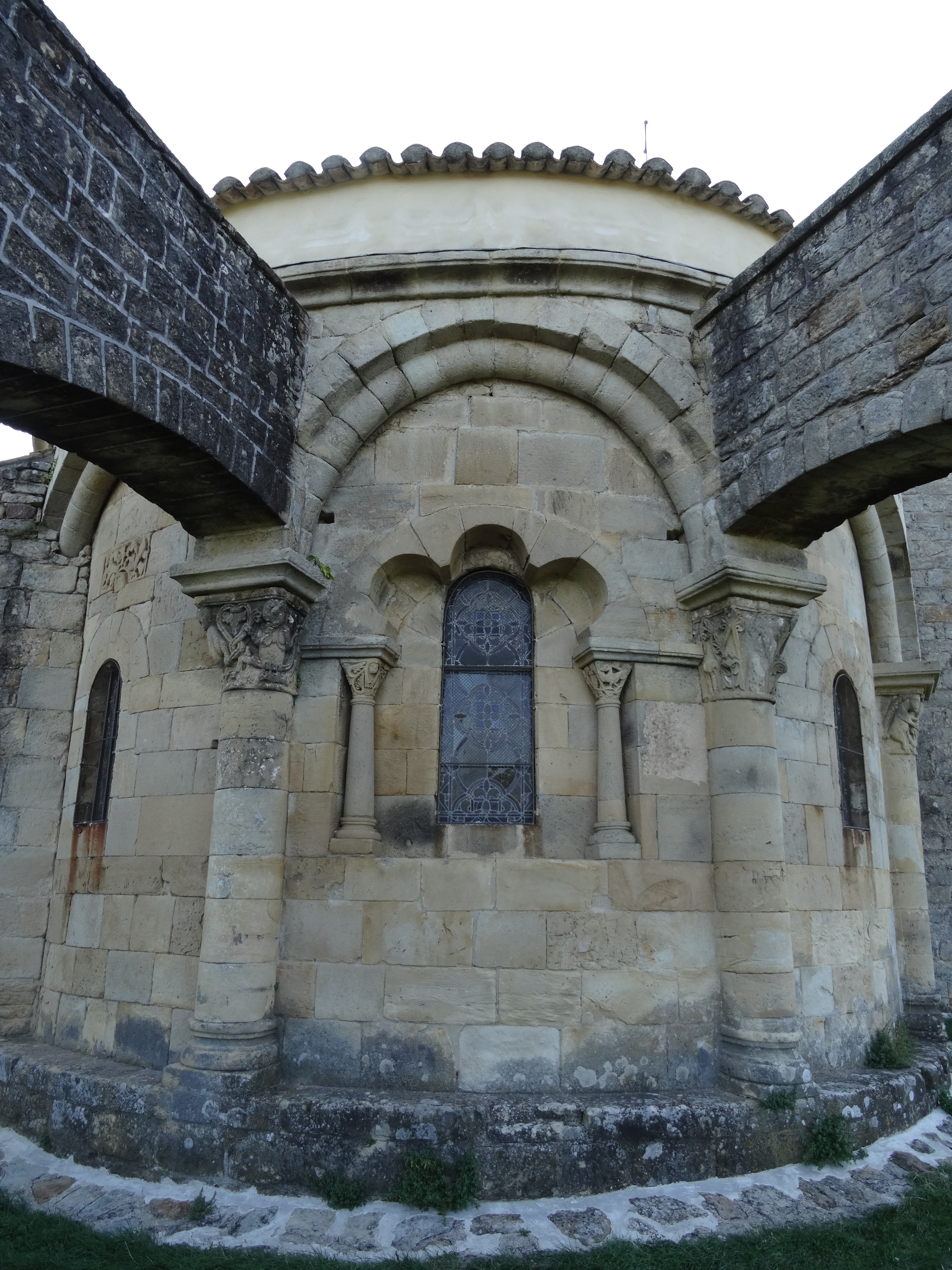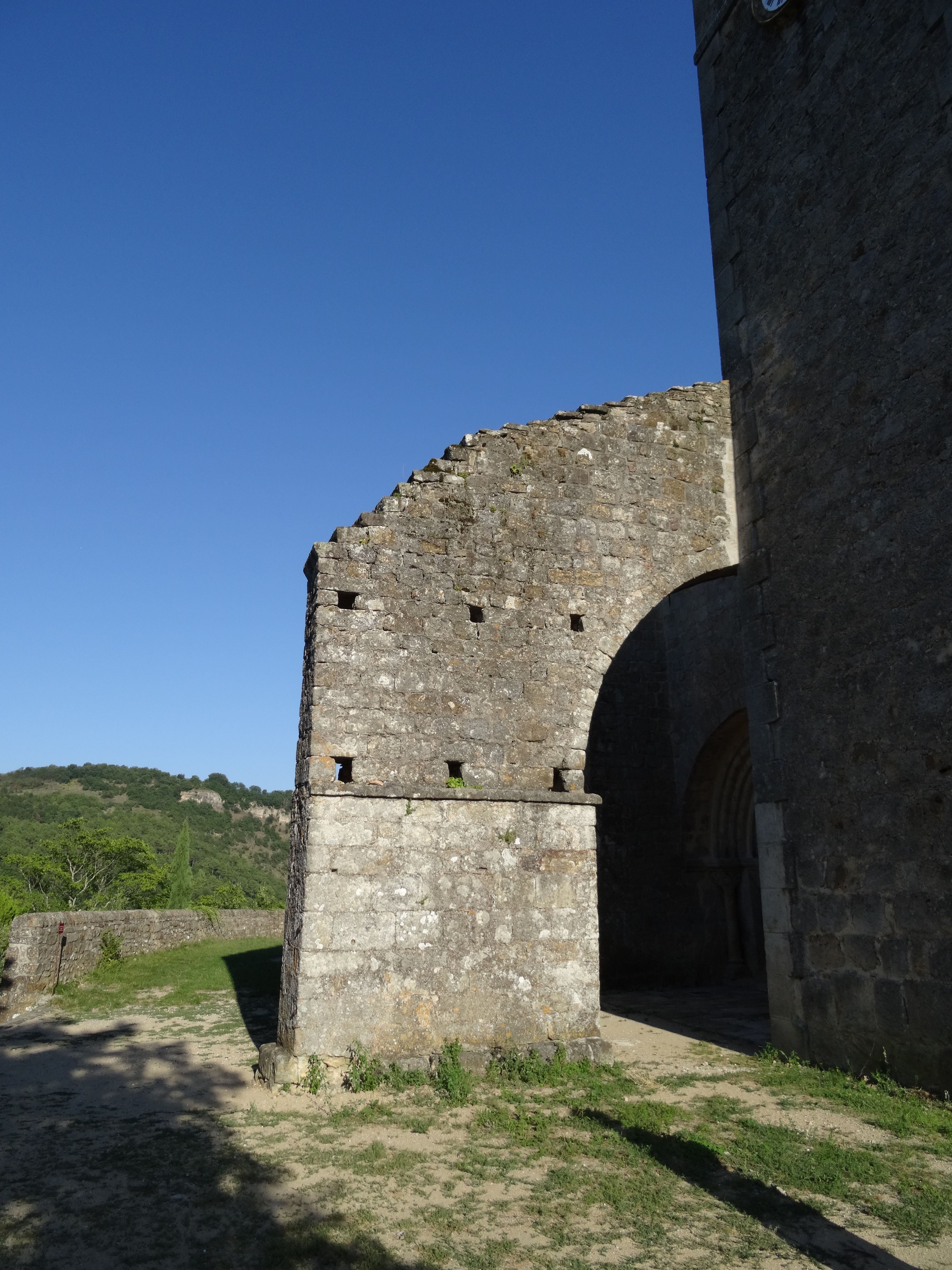 Saint-Julien-Du-Serre, Eglise romane, Chevet, Contreforts du chevet (2).jpg