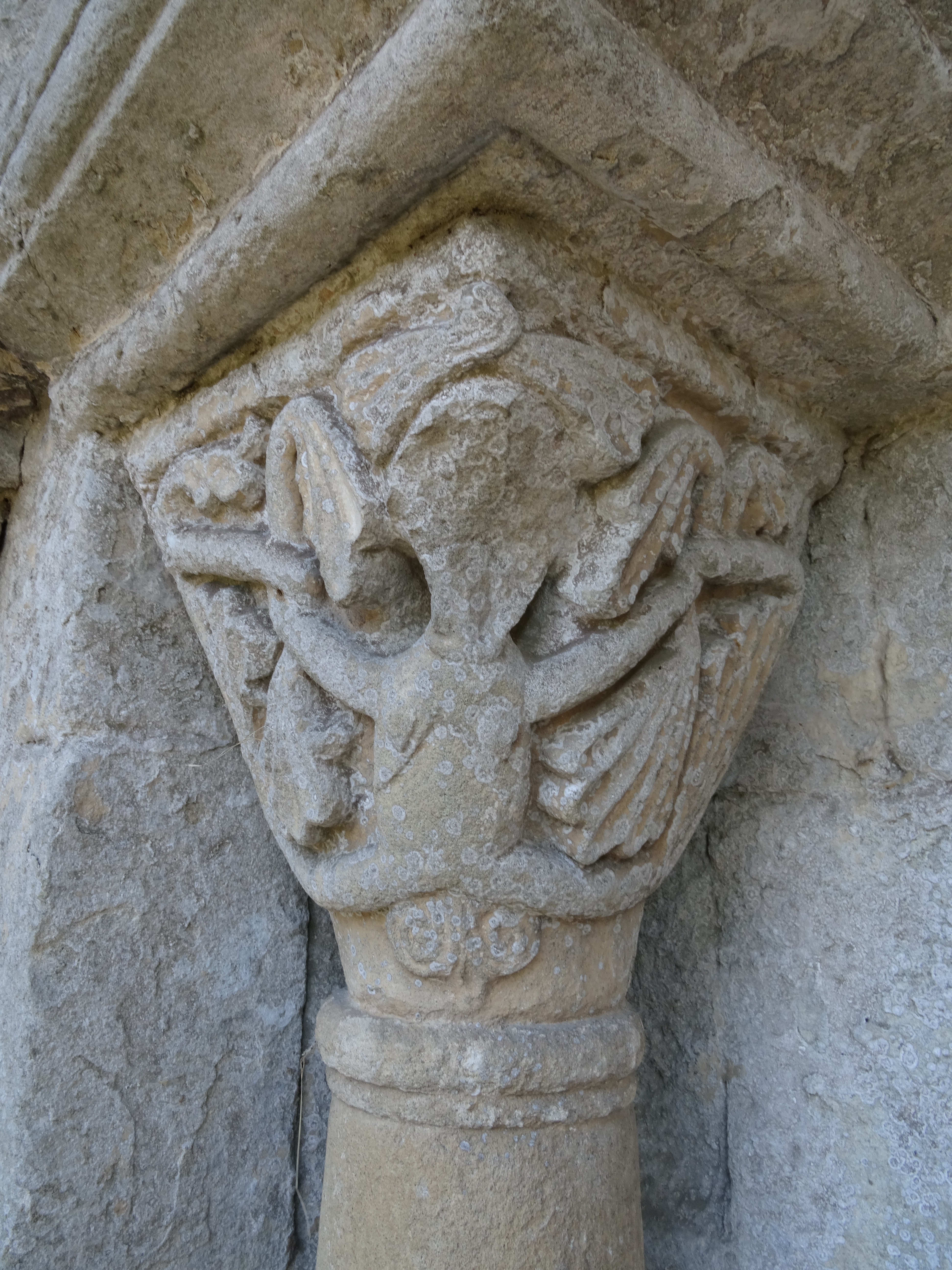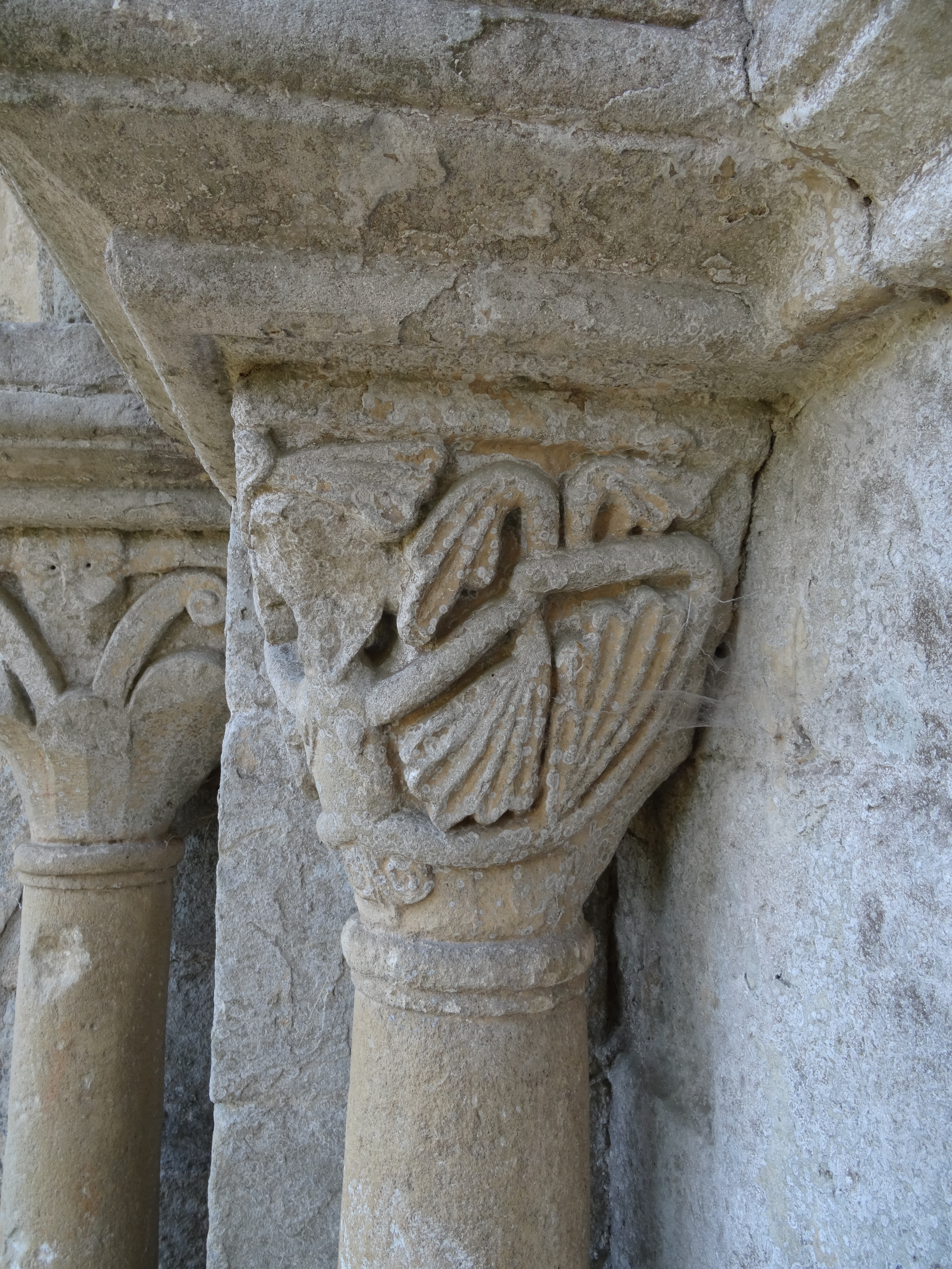 Saint-Julien-Du-Serre, Eglise romane, Porche, Chapiteaux (2).jpg