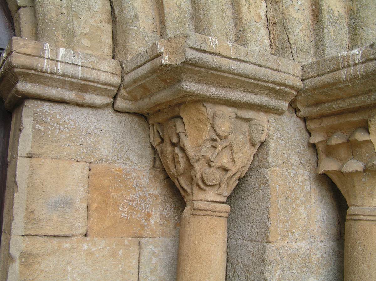 Saint-Julien-du-serre, Eglise, Portail, Chapiteaux (3).jpg