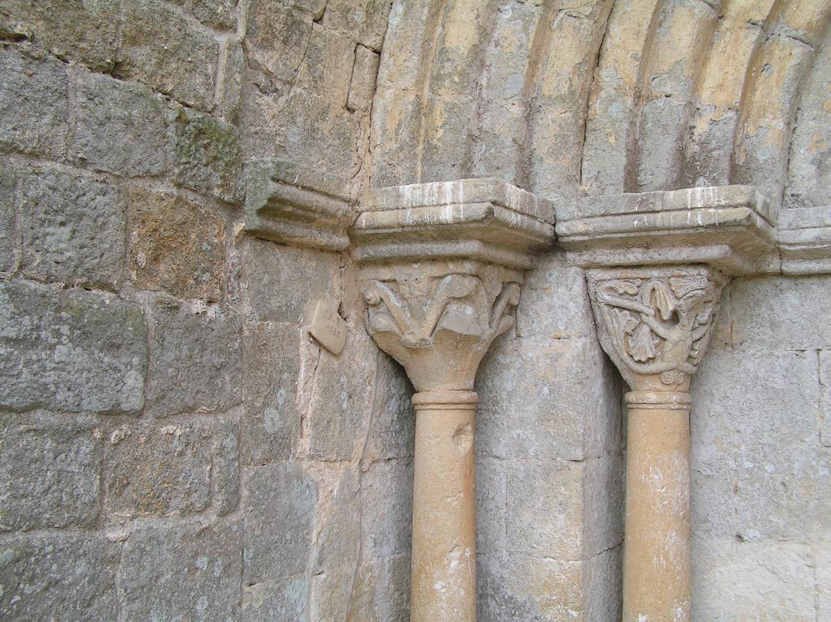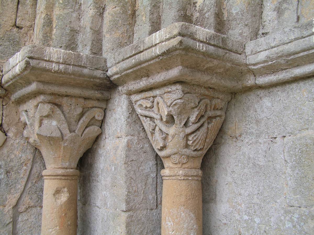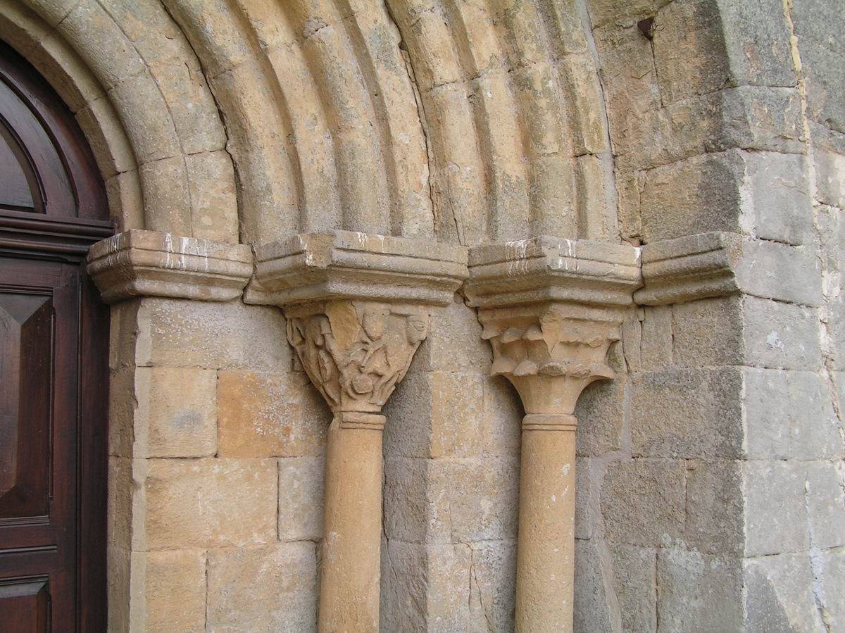 Saint-Julien-du-serre, Eglise, Portail, Chapiteaux (1).jpg