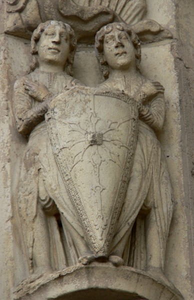 Chartres, Cathedrale, Statue, Hommes et bouclier.jpg