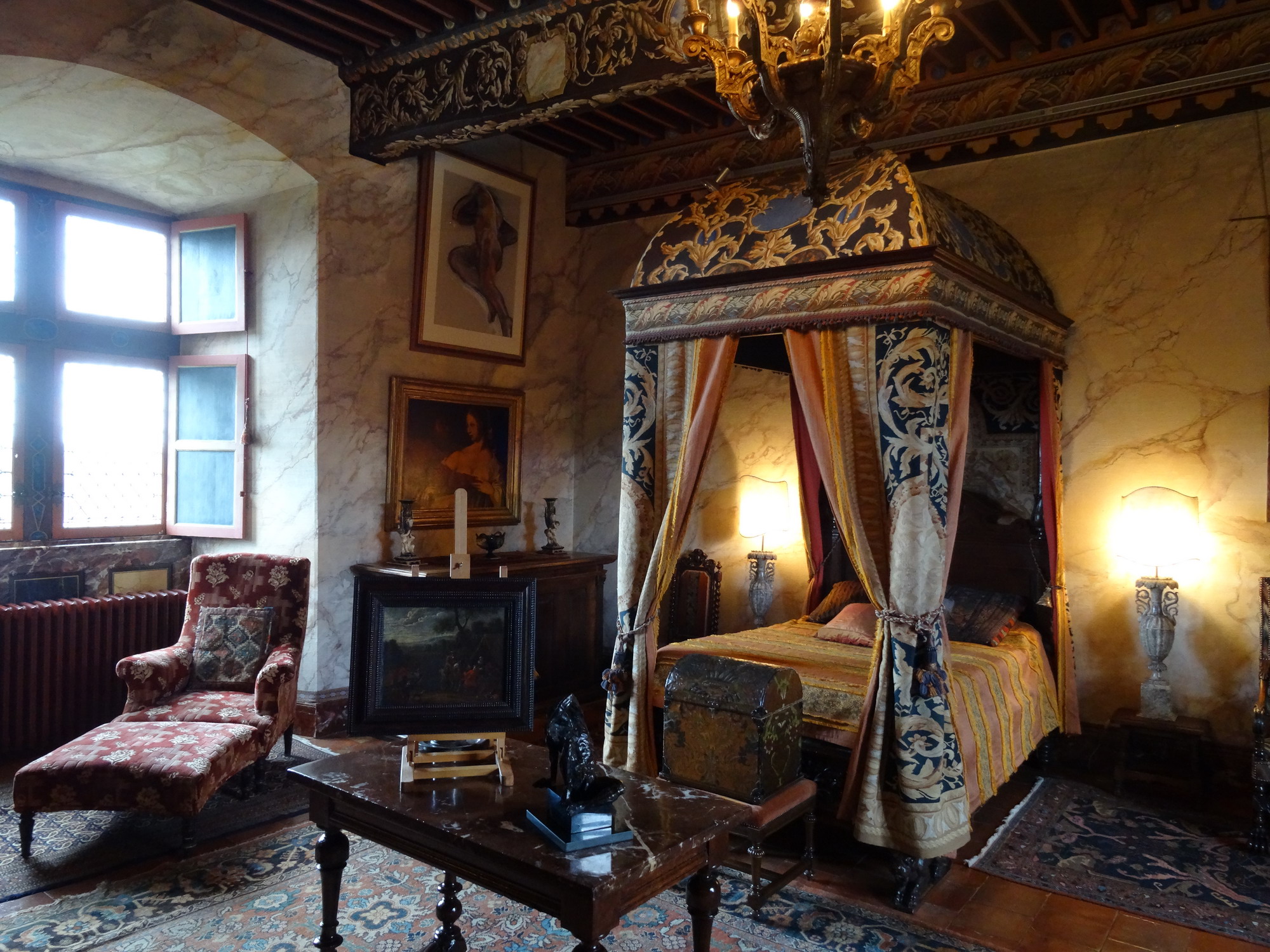 Chateau de Mauriac (36), Chambre, Lit à baldaquin.jpg