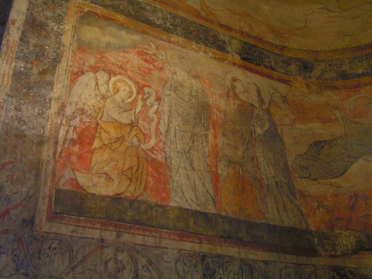 | Italie, Agnani, Cathedrale, Fresque, Miracle de Saint Magne (1240-1260).jpg | Pise, eglise San Sebastiano in Banchi, Vierge a l'Enfant (de Enrico di Tedice, v 1250).jpg Attribué à Enrico di Tedice (actif à Pise entre 1252 et 1279) Vierge à l'Enfant Pise, église San Sebastiano in Banchi, vers 1250 Peinture murale | Polignac, Eglise Saint Martin, Chapelle droite, Vie de Marie (Annonciation, Visitation).jpg France, Haute-Loire, Polignac, Eglise Saint Martin, Chapelle laterale droite, Fresque du 14eme, Vie de la Vierge Marie (Annonciation, Visitation).jpg | Polignac, Eglise Saint Martin, Chapelle droite, Vie de Marie (Annonciation, Visitation, Nativite).jpg France, Haute-Loire, Polignac, Eglise Saint Martin, Chapelle laterale droite, Fresque du 14eme, Vie de la Vierge Marie (Annonciation, Visitation, Nativite).jpg |