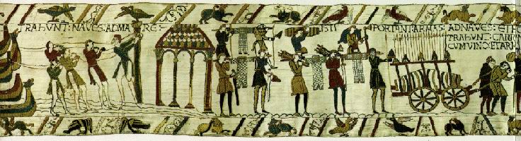 Une fois les vaisseaux construits, ils sont mis à la mer puis attachés à des piquets. Il faut maintenant les aménager pour y stocker tout le matériel nécessaire à une guerre: vivres, chevaux, armes, etc.