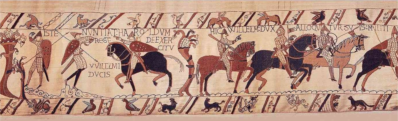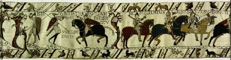 L'un d'eux aperçoit les troupes normandes; il court avertir Harold de l'approche de Guillaume et des siens.