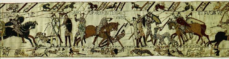 Harold se réfugie au milieu des quelques soldats valides q'il lui reste. Il n'a certes pas démérité, et a combattu comme un véritable chef d'armée. Mais cela n'a pas suffit à apaiser la tornade normande.