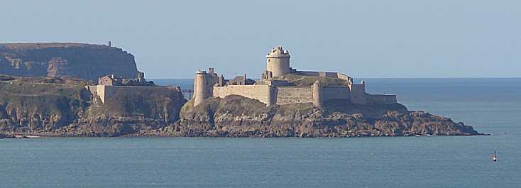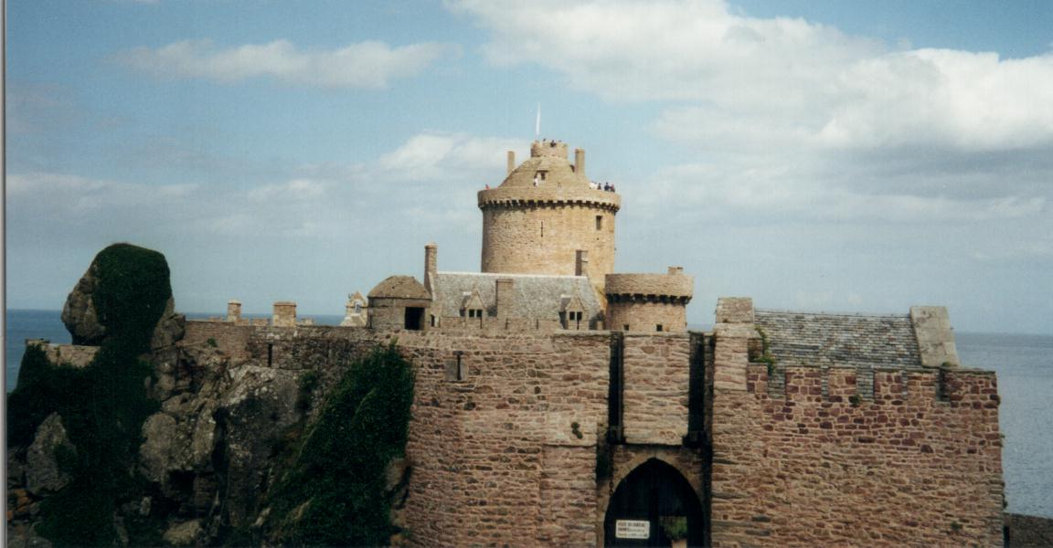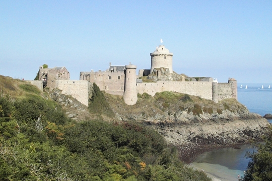 Etienne Goyon de Matignon fera construire au 14ème siècle l'imposant donjon qui le domine, point de repère de tous les marins croisant au large, afin d'en compléter la défense pendant la guerre de succession. Auparavant dénommé château de la Roche-Goyon (du nom de la famille à laquelle il appartenait), il prendra le nom actuel, qui est celui du petit village qui y menait, en 1592, mais sera toujours surnommé du nom de ses bâtisseurs jusqu'à la fin du 18ème siècle.