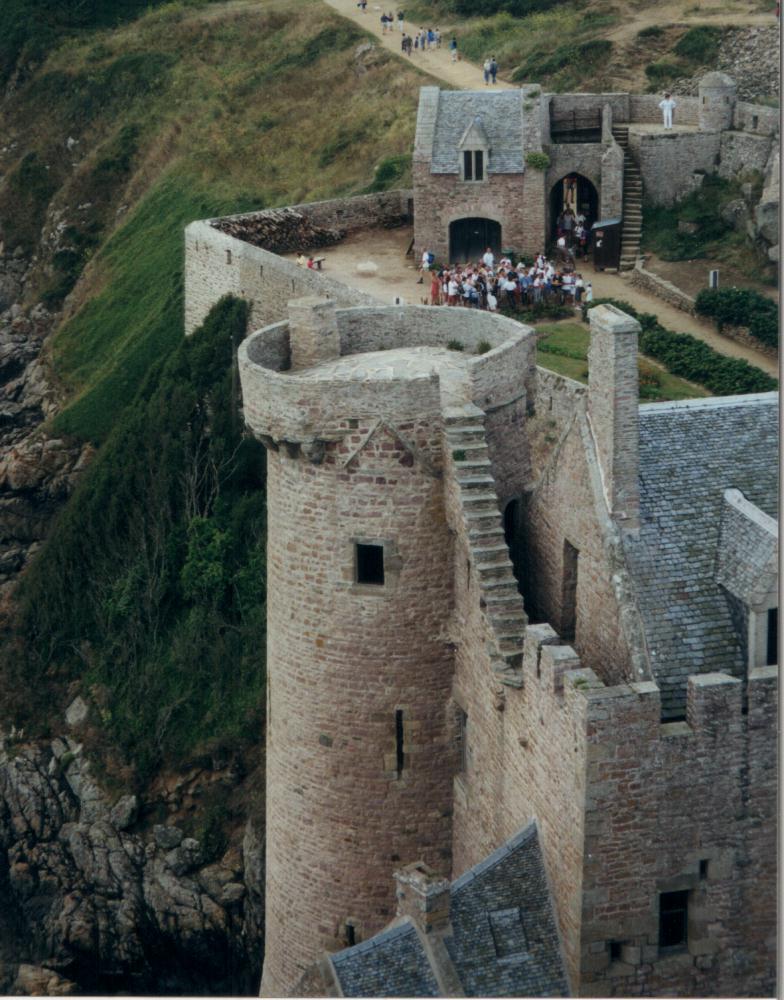 L'ouvrage actuel a vu son édification étalée sur les 13ème et 14ème siècle, sur les ruines d'un fort primitif construit en 937 pour défendre l'entrée de la baie par les envahisseurs Normands. Le château actuel fut commencé avant l'apparition du canon en Bretagne (1364) puis poursuivi au gré de la bonne fortune des Goyon dans la deuxième moitié du XIVe siècle.