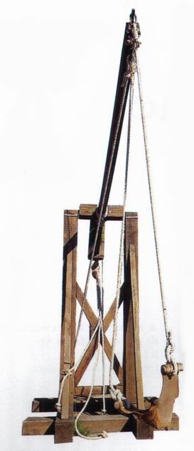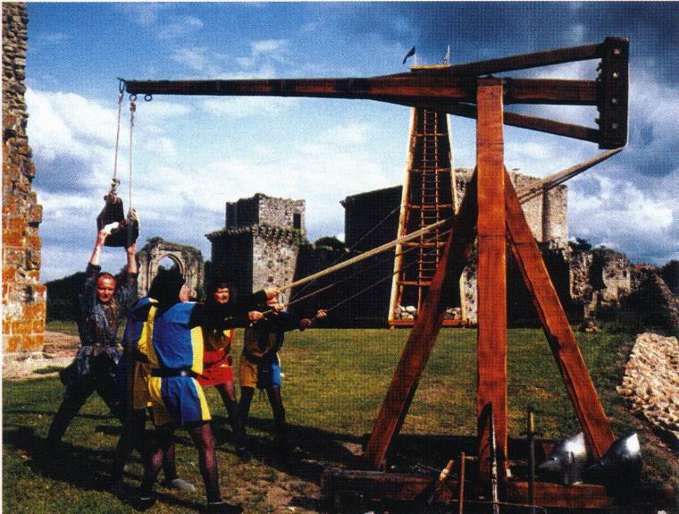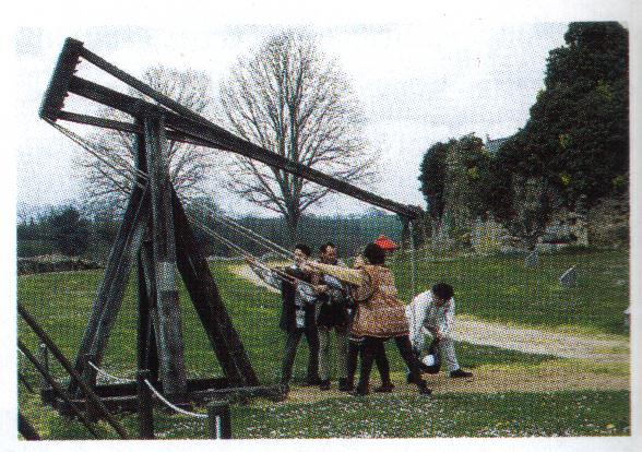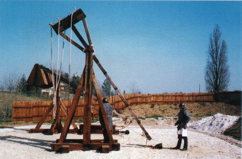 Pour améliorer les performances des pierrières, on introduit un système de contrepoids en métal. La cadence de tir est élevée si les poids sont limités et les projectiles modestes. Cet engin défensif, ancêtre du mangonneau, est installé sur les remparts des forteresses.