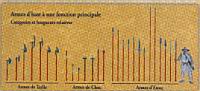 | Pique | Longue lance de fantassin (environ 6 mètres) rappelant celle des phalanges Macédoniennes. Elle fut largement utilisée par l'infanterie suisse du XVe au XVIIe siècle. |