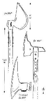 ![]() Soldat du XIVe siecle possedant une hache à pointe derrière le tranchant |