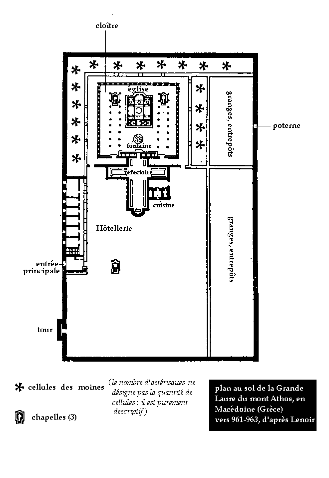|  du Mont Athos en Macedoine, plan vers 961-963, d'apres Lenoir.JPG) Grece - Grande Laure (Sainte Laure, Laura, Lavra en copte) du Mont Athos en Macedoine, plan vers 961-963, d'apres Lenoir.gif