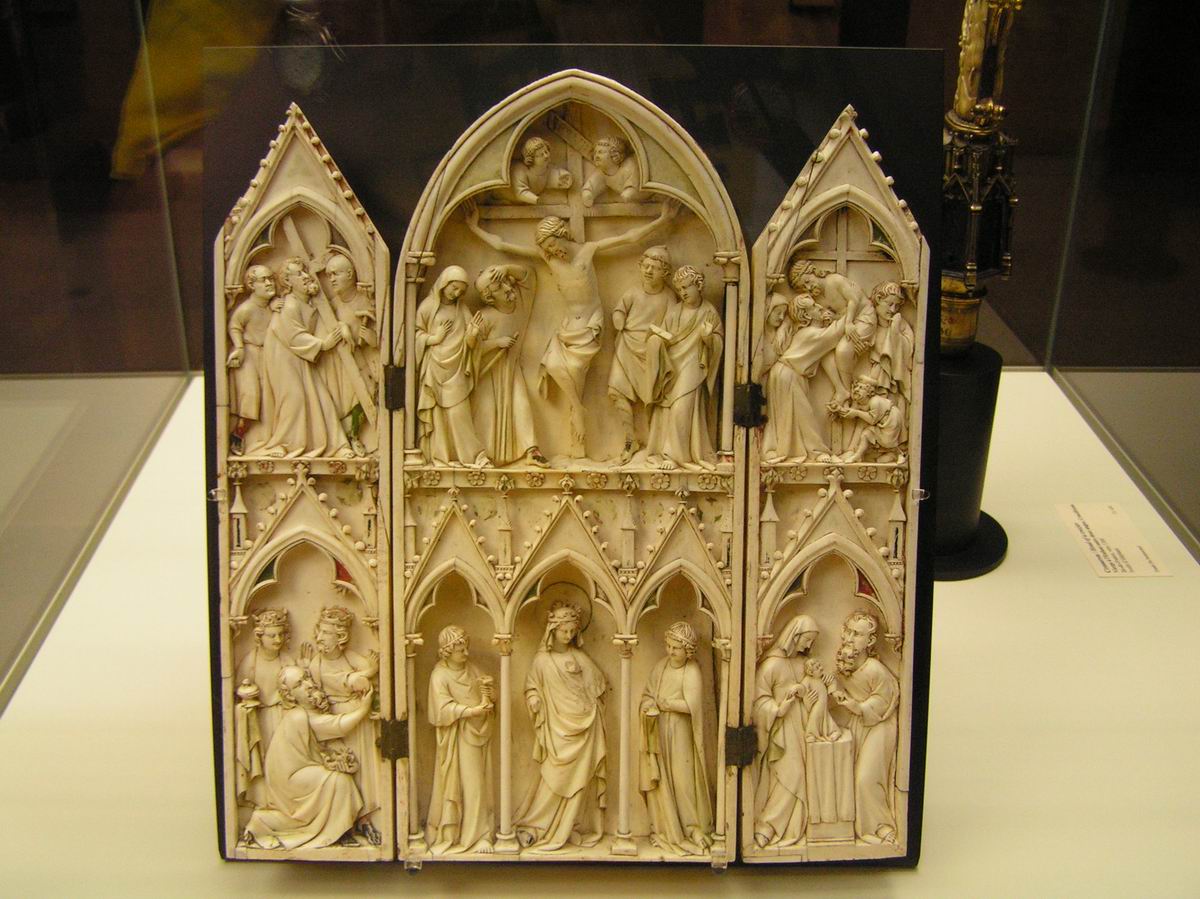 | Trois chapiteaux ornes de tetes grimaçantes (Pierre calcaire, 1290-1300)(4).jpg | Tryptique (Paris, musee de Cluny).jpg | Vierge a l'Enfant (de Tino di Camaino, Naples, v 1330, Marbre)(1).jpg Tino di Camaino (Sienne, vers 1280 — Naples, 1337) Vierge à l'Enfant Naples, vers 1330 Marbre Londres, Victoria and Albert Museum Inv. A.31-1964 | Vierge a l'Enfant (de Tino di Camaino, Naples, v 1330, Marbre)(2).jpg |